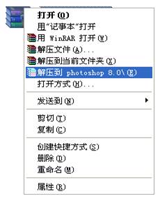 2、在安裝包上點(diǎn)擊鼠標(biāo)右鍵,選擇解壓到photoshop 8.0,