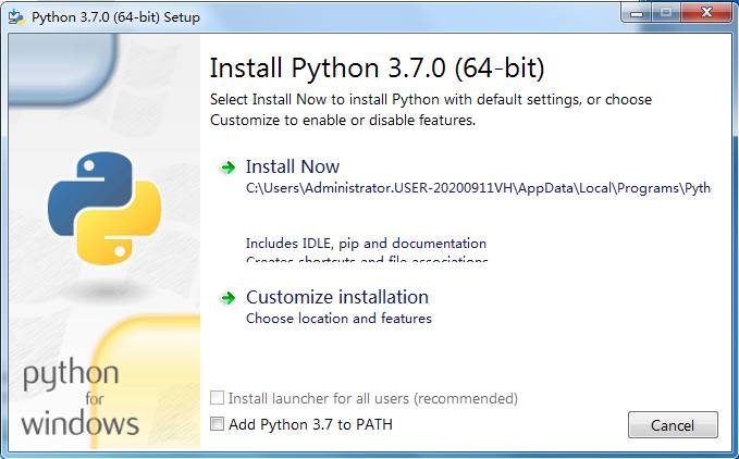 2、雙擊“python-3.7.0-amd64.exe”打開(kāi)安裝程序。