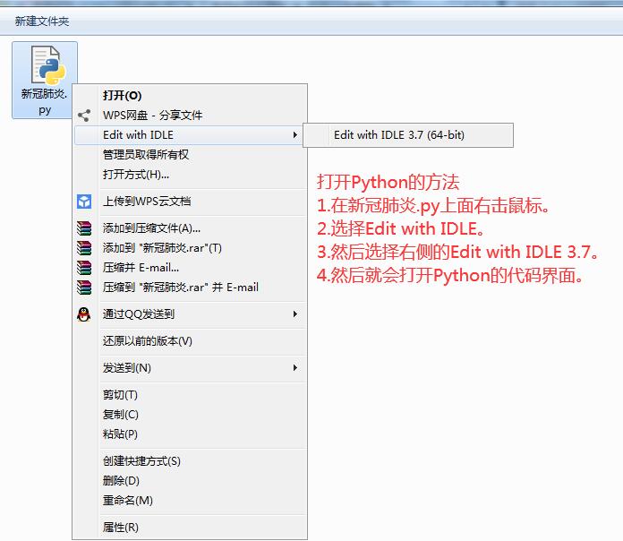 注意:如果您的電腦系統(tǒng)安裝Python后,再py文件上面右擊鼠標(biāo)沒(méi)有Edit with IDLE選項(xiàng)的話,則參考下面的打開(kāi)方法。