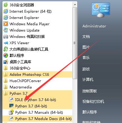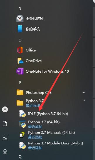 1.在左下角的開(kāi)始菜單里面,找到Python文件夾中的IDLE(Python 3.x)如圖箭頭指向