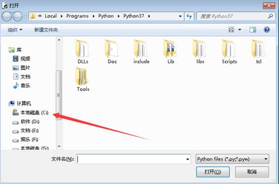4.再?gòu)棾龅拇翱谥羞x擇左側(cè)的C盤(pán)下:EXAM下Python操作文件夾下的“新冠肺炎.py”