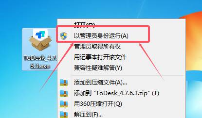 2、在ToDesk安裝包上右擊鼠標(biāo),選擇以管理員身份運(yùn)行打開程序